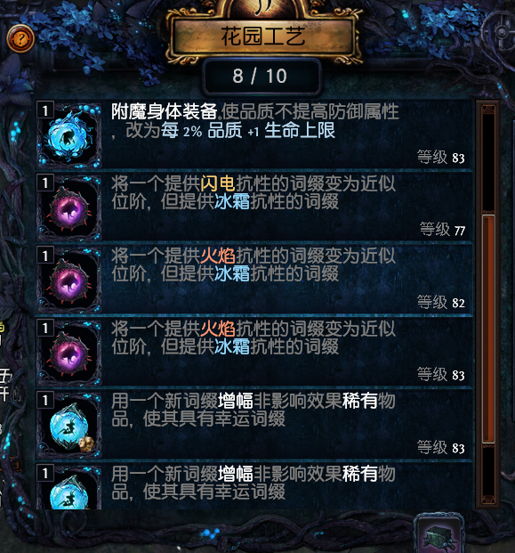 跑花园工艺!做极品装备离不开庄园工艺,用特定词缀增幅稀有物品的工艺就非常值钱,一般是几个崇高石一次,但不常见。常见的抗性转换工艺也值10-30C左右,这个好跑,且用量大。如果出一次分裂这样的极品工艺都是十几个崇高一次。非常值钱。交易的时候也注意,分裂这种高级词缀都是先给崇高,否则不要交易,被骗的太多了。