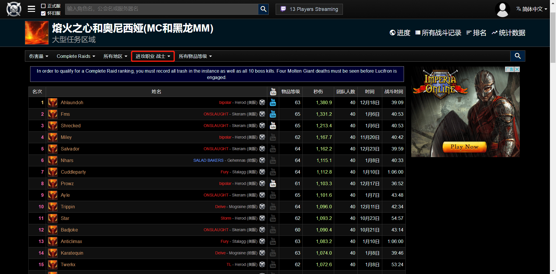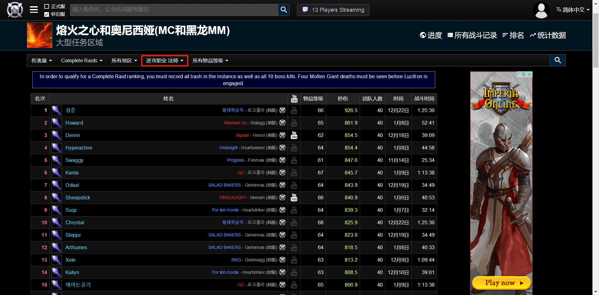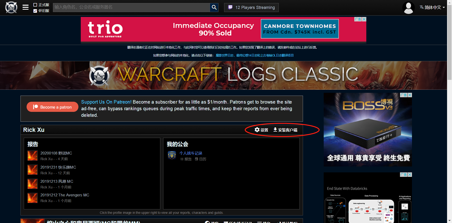 WCL怀旧区主页[https://cn.classic.warcraftlogs.com/]