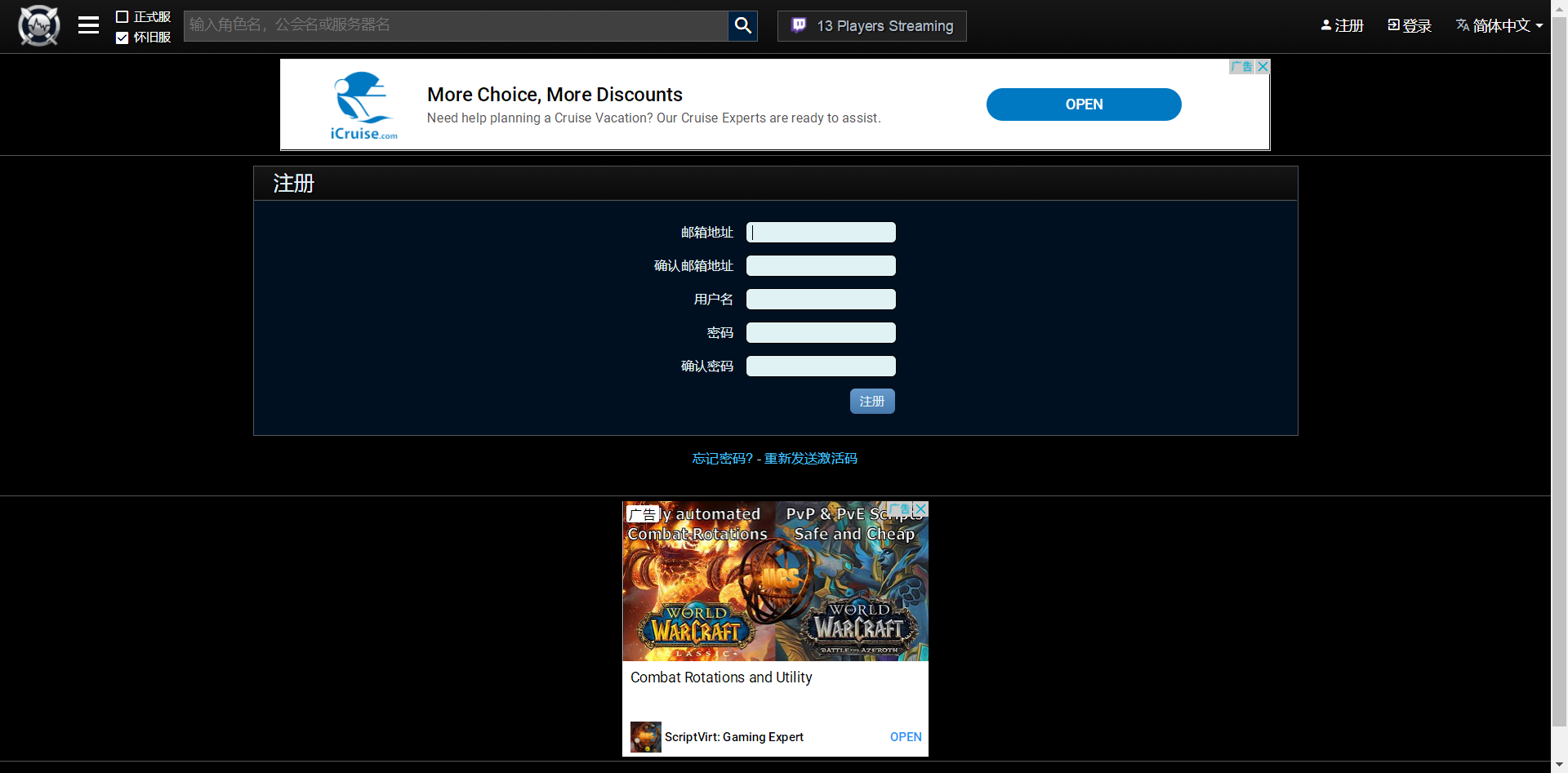 进入WCL的主页[https://cn.classic.warcraftlogs.com/]