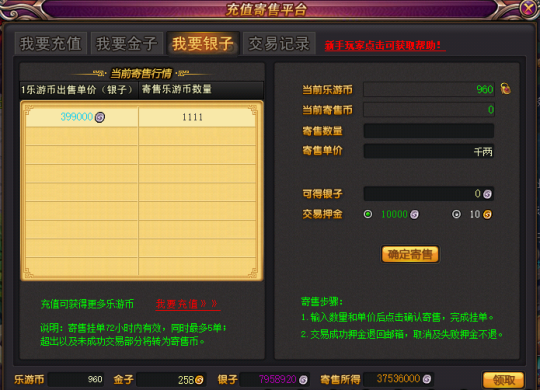 而在《桃花源记》内置的寄售平台下,大家就能把自己积累的金票、银票等货币资源进行变现,与服务器的其他玩家来交换。