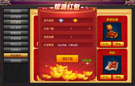 在日常的帮派任务、帮派跑商之余,《桃花源记》还在游戏内加入了帮派红包的互动项,玩家可以把自己累积下来的金票、银票等货币资源,包在帮派红包之后,在游戏内玩起抢红包,进一步提升帮会成员间的活跃度。