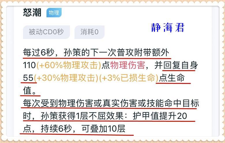 孙策被动技能的核心关键词是:强化普攻、不屈。