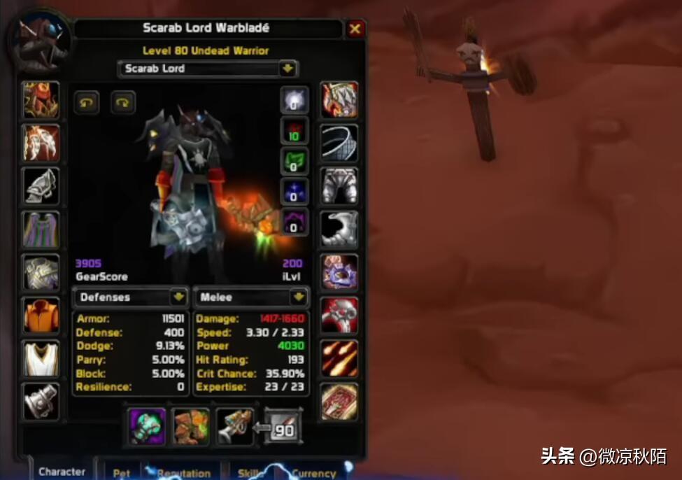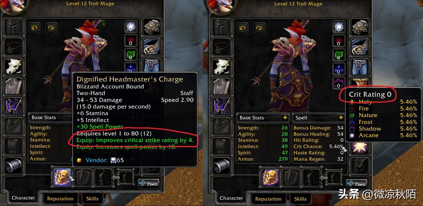 理论上来说,如果现在的战士在队伍BUFF和面板暴击等级结合后有30%的暴击率,那么等到了ICC阶段达到50%之后。其来自附魔的法术暴击所制造的伤害能让DPS提升20%左右,美服玩家的模拟结果是从80DPS增加到400DPS。
