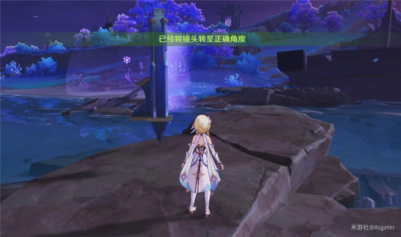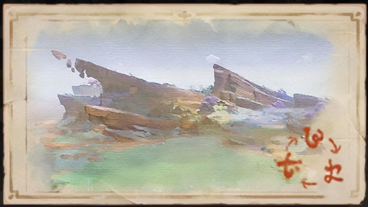从清籁岛七天神像处向西走,来到实景标记图所标记的山崖处,使用拍照功能将视角转向西南方向即可: