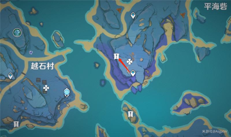 从越石村西侧传送锚点处向西抵达清籁丸地区之后的西侧的一处沿岸的石板处,将拍摄视角转向东方向即可: