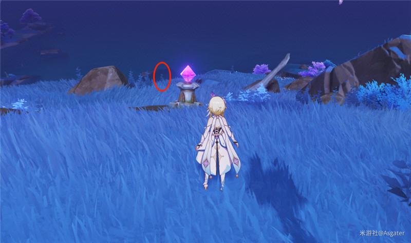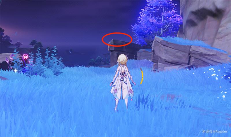 ②、传送至路线图中的传送锚点之后,根据下图圈出的标记,到达这棵植物所处的位置