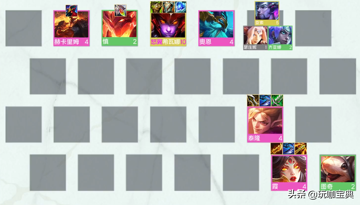 3阶段我们准备卡50金币升人口,5级可以加一张琪亚娜,到达6级之后,可以下掉琪亚娜,添加双重骑兵(猪女、莉莉娅、努努),护卫方面也可以更换成锤石+布隆,坦度更高,如果双骑兵没来也没事,我们换成肾+琪亚娜也可以,双风暴龙还是非常强的。