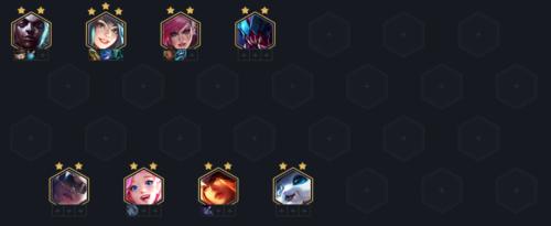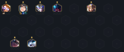 后续到了决赛圈升九,直接单挂五费牌,杰斯为后期主T,希尔科、塔姆都可以,注意站位让艾瑞莉娅尽量不要对位到对面最肉的前排,刀妹需要迅速解决掉第一个目标刷新技能收割。如果有强袭转给赛娜补皇子开6强袭,看情况也可以开4执法,补足阵容成型后基本无敌。