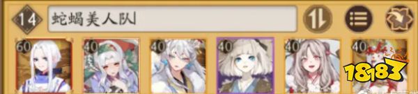针女歌姬,攻攻爆,缚姬。(前期开大招,等千姬五层悲歌增伤后,缚姬放出蛇灵即可)