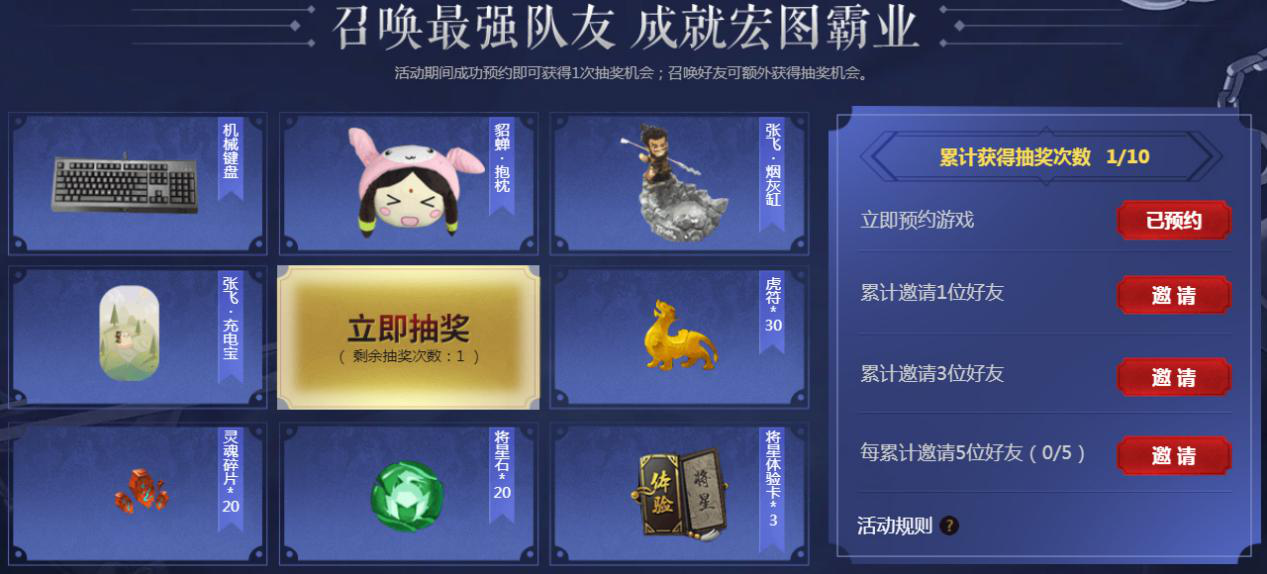 邀请好友还有获得抽奖机会!实物奖励雷神键盘、定制版充电宝等限量版周边拿到你手软!