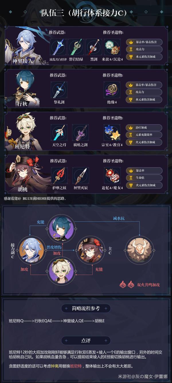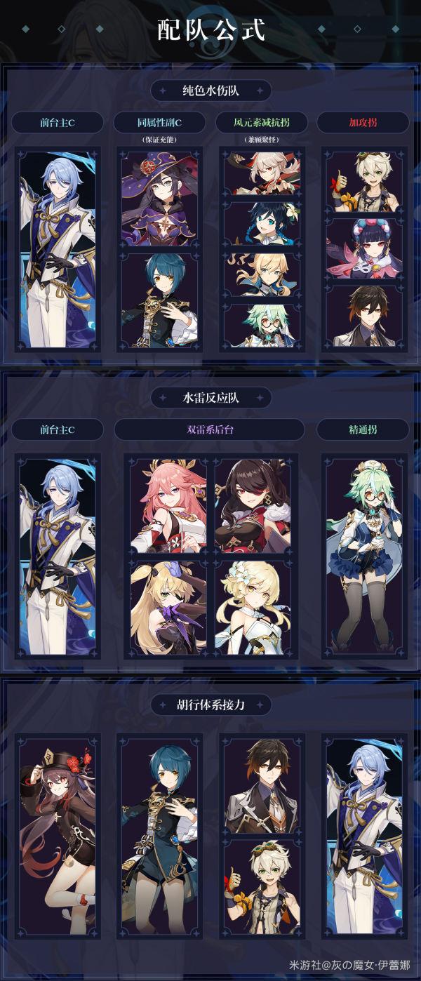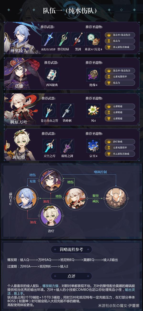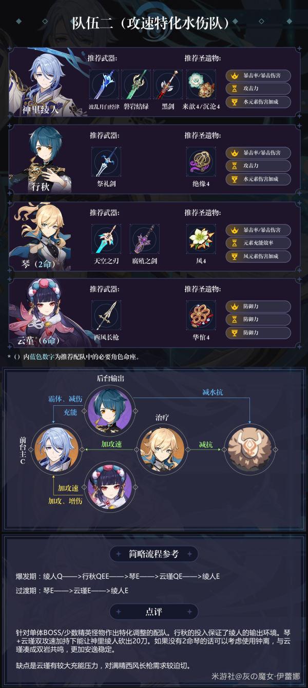 1 以绫人作为主C,最大化增幅绫人本体造成的水属性伤害的纯色水伤队伍