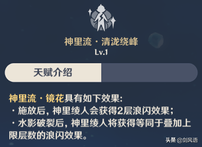 3.浪闪是基于绫人的生命值提升普攻伤害,10级1.11生命值/每层,四层提升伤害即是4.44%生命值。突破自身天赋,如下图,释放E技能直接获得两层浪闪,水影破裂获得四层,解锁2命后,那就是获得五层浪闪。