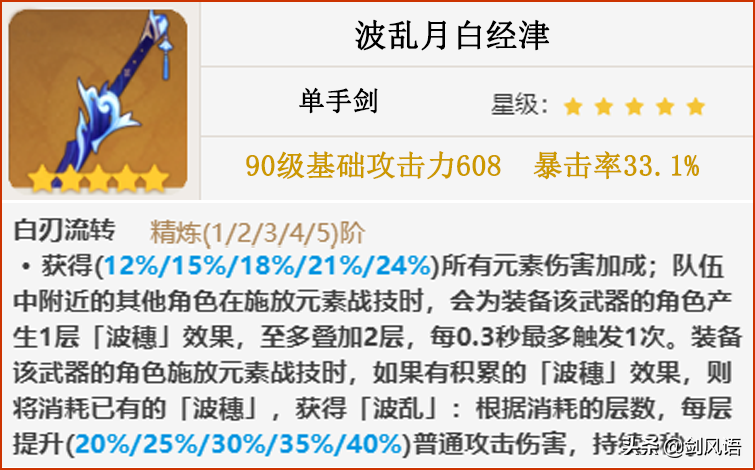 副属性增加暴击率,被动获得元素伤害加成,同时提升普攻伤害。