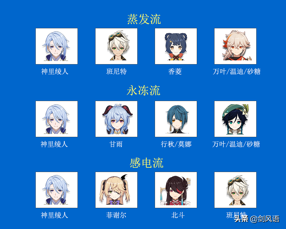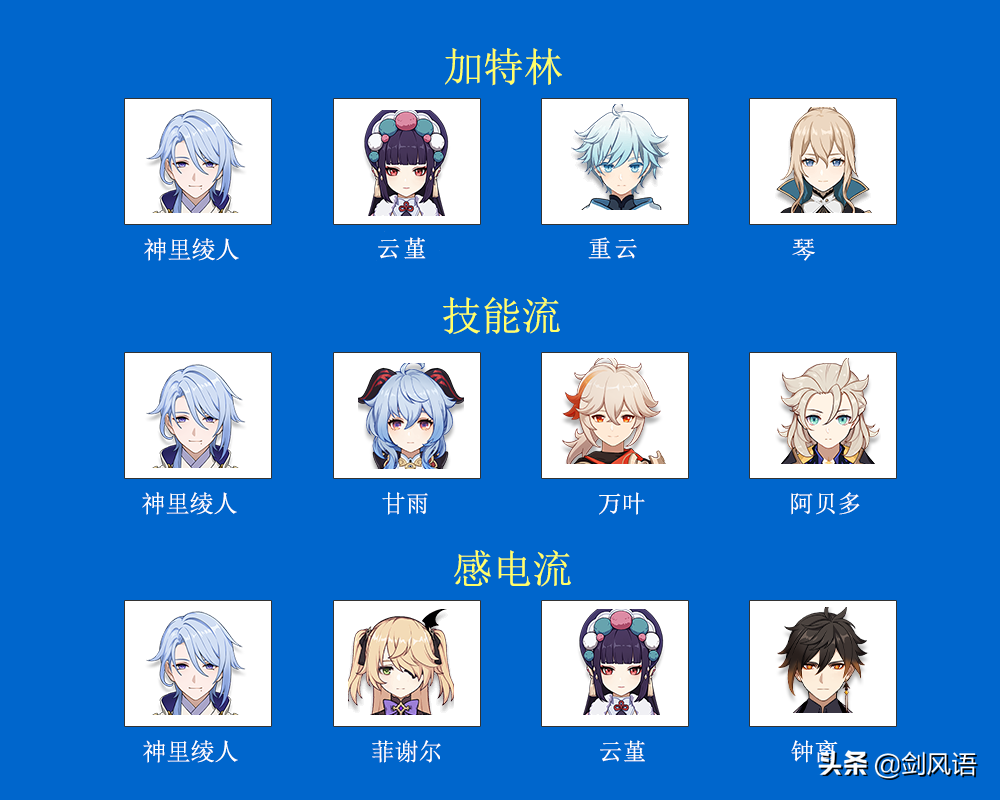 以上阵容大世界比较快乐。深渊就不太行,深渊都离不开控怪和回血,还要有爆发。
