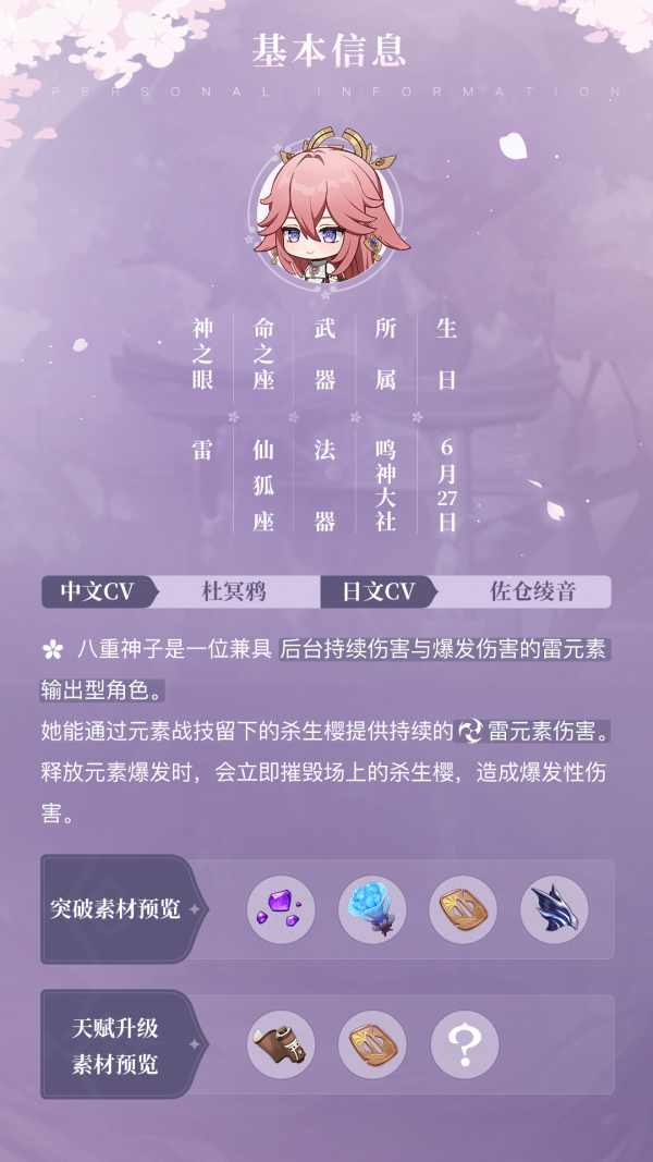 •提高了「杀生樱」的位阶与影响范围,是为核心中的核心,拥有一定条件的旅行者推荐抽到2命就可以收手了