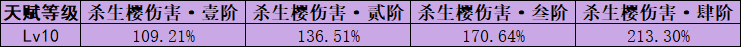 •「杀生樱」初始为壹阶,当附近存在其他「杀生樱」时,提高其位阶,位阶越高伤害越高