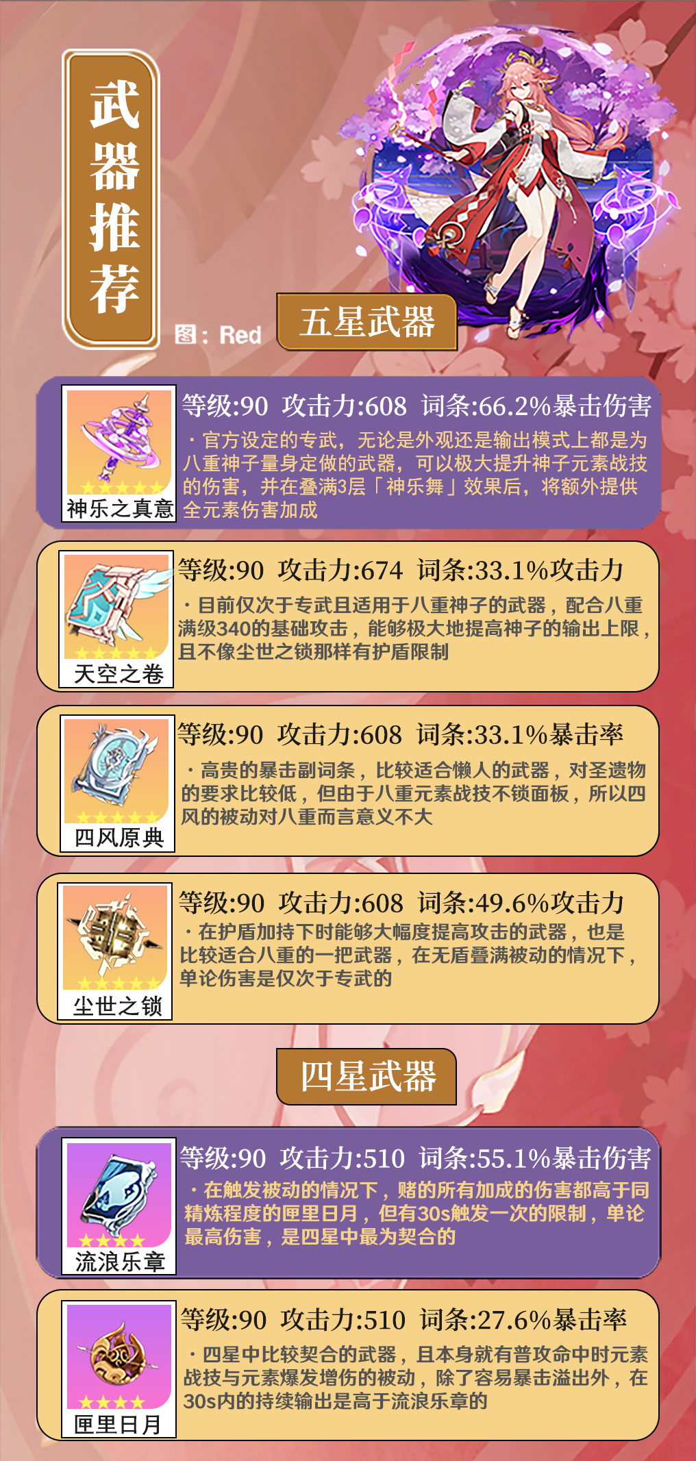•官方设定的专武,无论是外观还是输出模式上都是为八重神子量身定做的武器