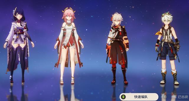 如:雷电将军+八重神子+万叶/满命九条+班尼特、砂糖+行秋+八重神子+北斗/菲谢尔/雷神/雷主......