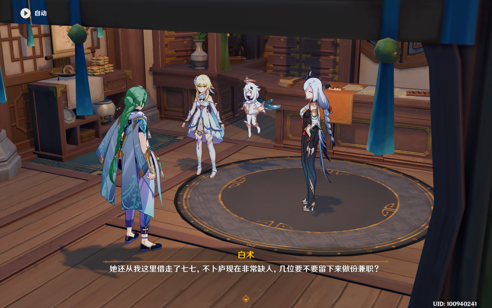 白术:这次还登场了白术,与被借走暂时看不见的七七(胡桃:我跟着去了),算是海灯节的前置预热了,话说清心加点糖比较好吃吧。