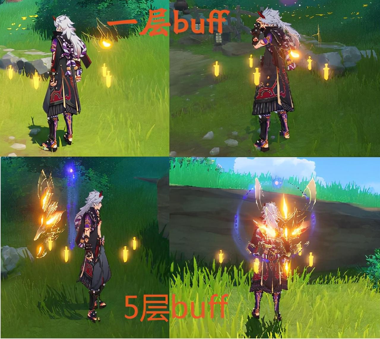 最后注意,荒泷一斗这是一个要叠很多buff的角色。1,自身技能被动buff。2,螭骨剑、白影剑的buff。3圣遗物华馆4件套的问答buff。在用的时候要注意一下尽量都要叠起来,如果实在顾不到瞎打就行了。