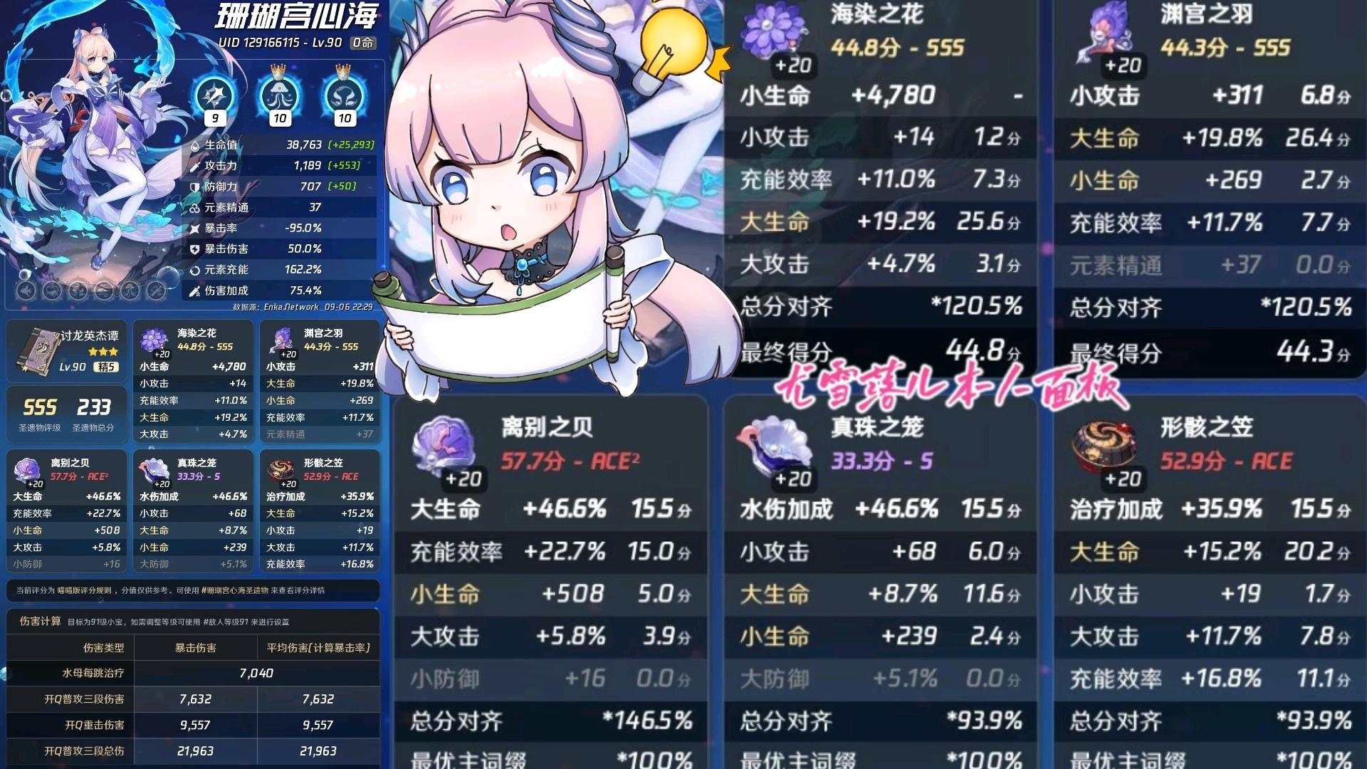 说重点,海染4是输出流心海的毕业套装,生命沙,水伤杯,治疗头,充能尽量160%以上。经过计算,水4不如海染4,水4的提升不如泡泡,以因此,水4并不推荐。注意,是水伤杯,不是生命杯,只要站场,泡泡可以轻松充满。当然,也可以充能沙、生命杯,但一般都是生水治。