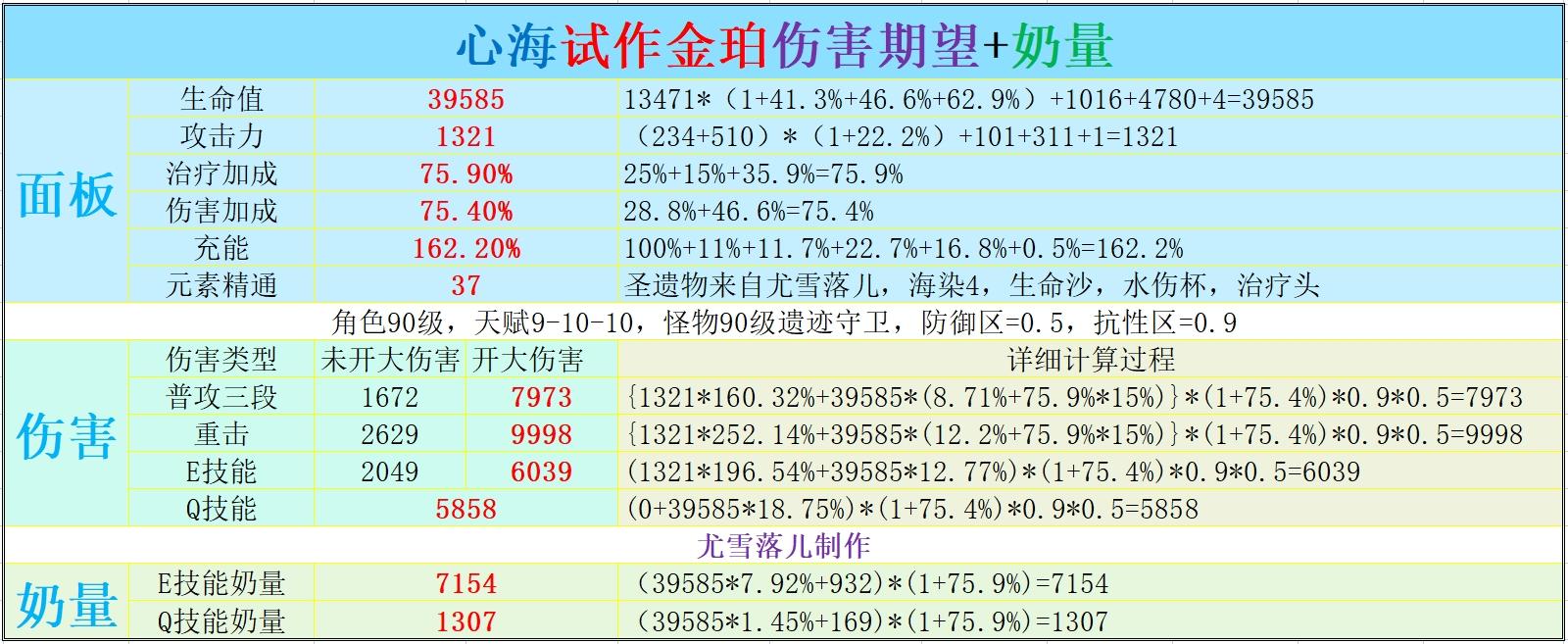 试作金珀:适合平民主C心海,伤害不如不灭乐华,但回能超不灭月华。被动回自己能量回全队血,回能与充能效率无关,但回血与治疗加成有关,其奶量=(对应角色生命值*恢复比)*(治疗加成+受治疗效果加成),治疗加成和受治疗效果加成在同一乘区。