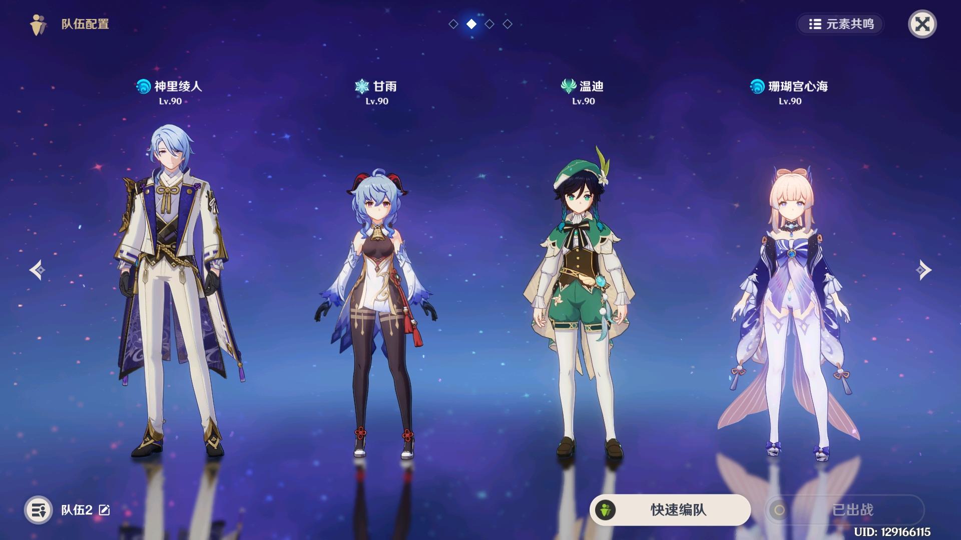 神甘温心:神里绫人+甘雨+温迪+心海,操作简单,适合打小怪。