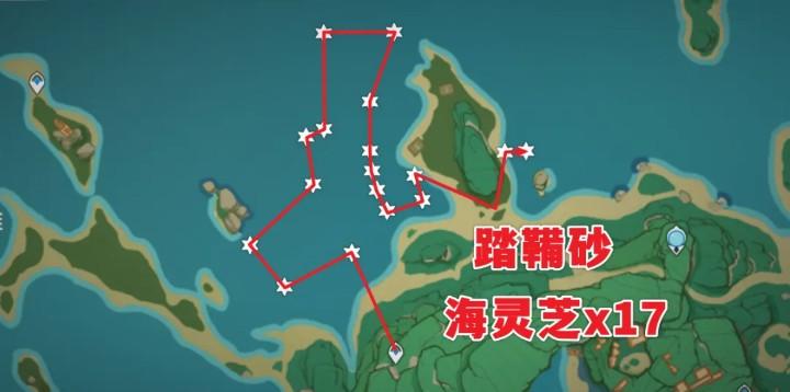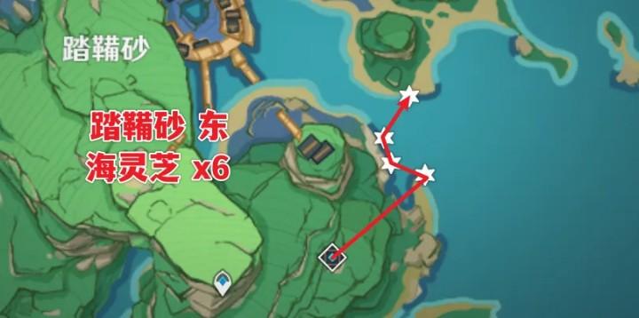 ▌然后来到踏鞴砂北部锚点,这里海灵芝最多,往北滑翔至浅滩可发现一株,往左走有一株,采完之后继续往北,接近小岛的地方有一株。然后往东北看,浅滩处有一株,采完之后北面小岛上有两株。然后往解密处游去,那里有一株。沿着浅滩往回走路上会有一株,小心刷怪。之后往小屋方向采集一株。小屋门口浅滩上还有两株。采完之后继续往北,水中央还有两株,然后来到岸边采集两株。最后越过这个小半岛去到对岸还有两株,累计17株。