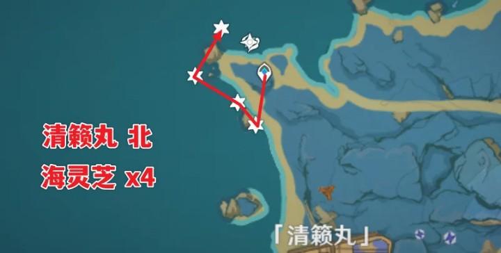 ▌传送至清籁丸北方锚点,不远处海岸石堆处可以发现两株,之后沿海岸线往南,枯树下面也可以发现两株。
