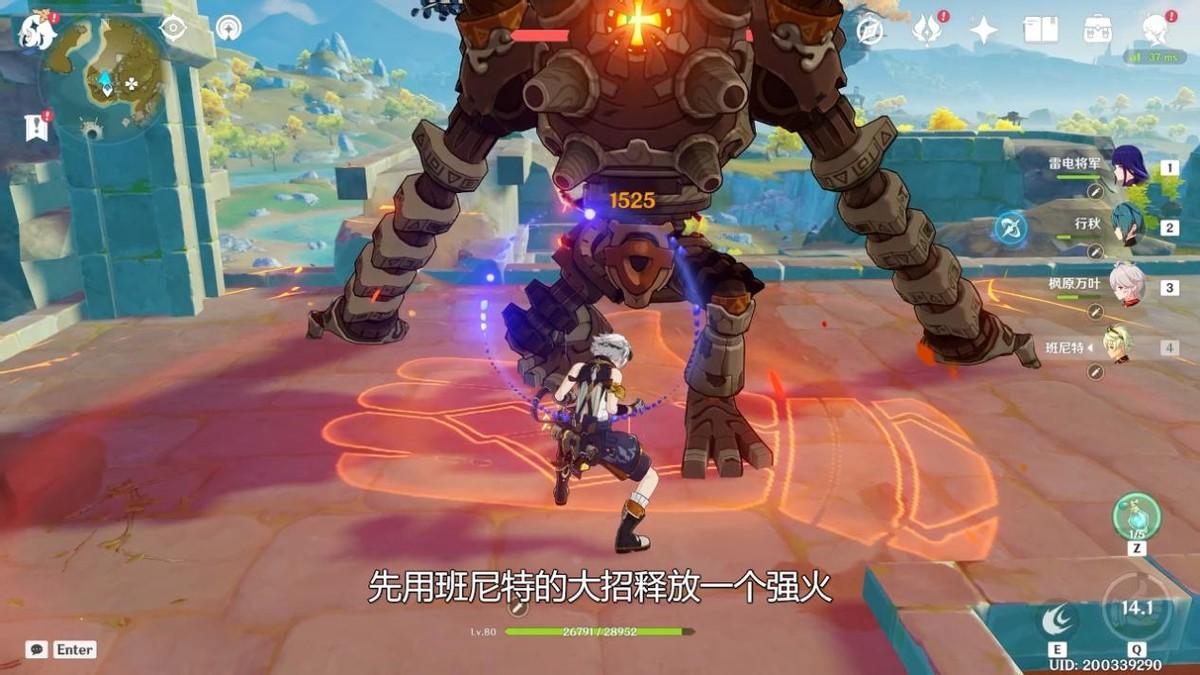 明白了他的道理之后,现在准备进阶玩法,先用班尼特的大招释放一个强火,