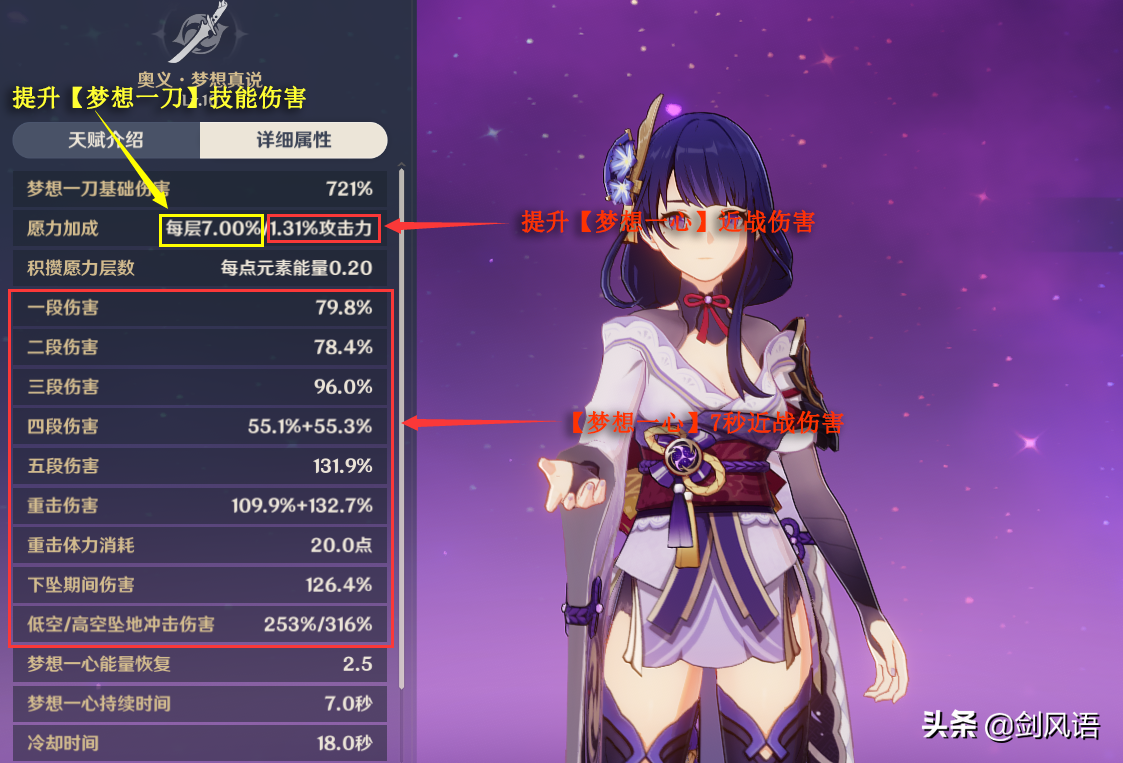 2.愿力层数上限是60层,愿力伤害加成有两个数值,前面是提升【梦想一刀】伤害,后面是提升【梦想一心】伤害。