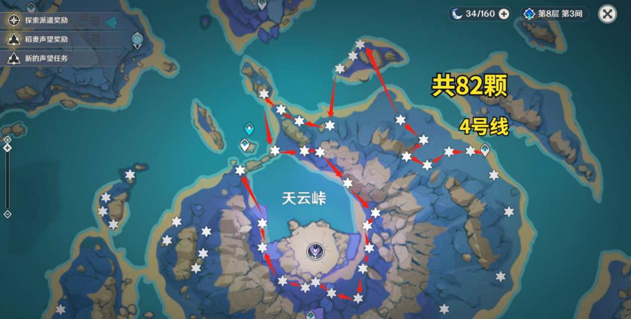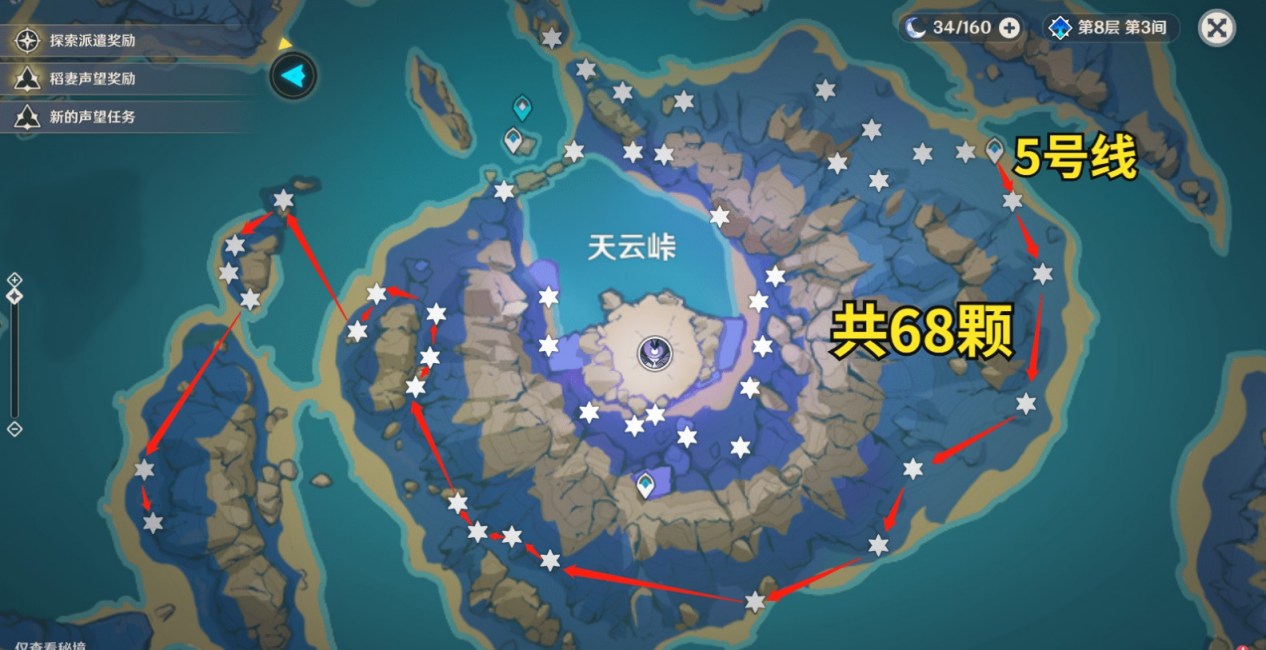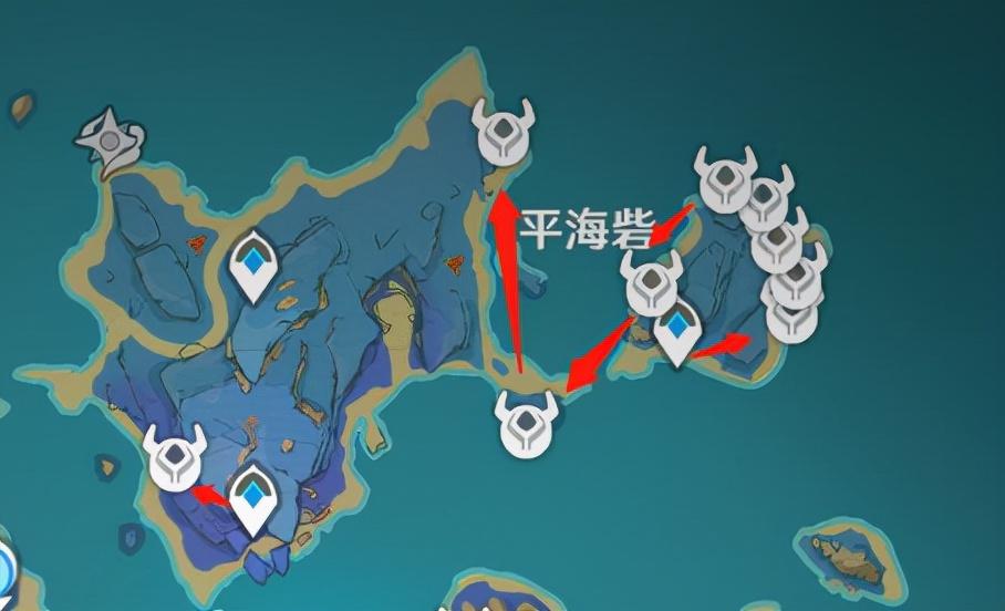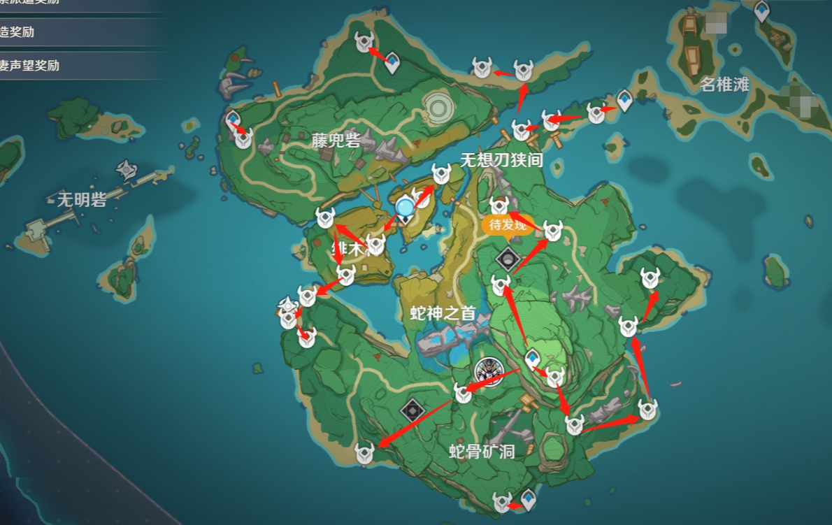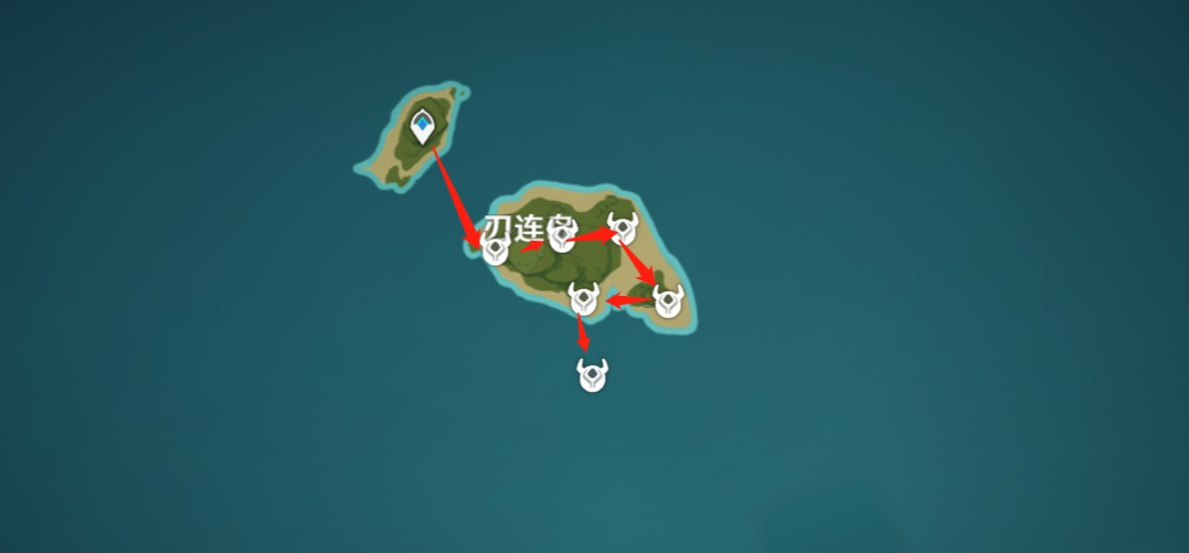 刀镡系列材料可以刷稻妻地图的野伏众、海乱鬼。以下送上推荐刷怪路线图。
