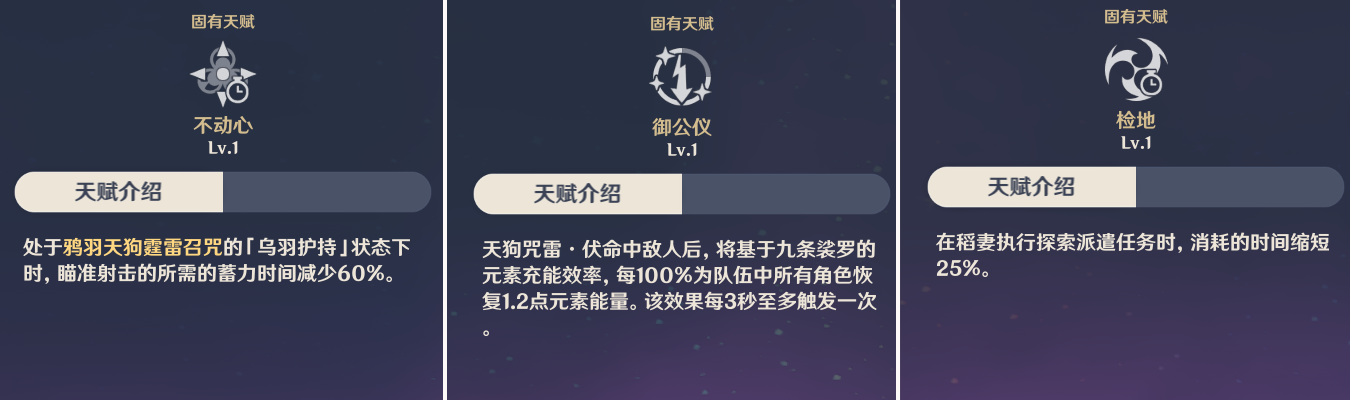 释放元素战技后,【乌羽护持】状态下提高蓄力速度,提高60%时间,这个天赋等突破2命之后基本用不上,