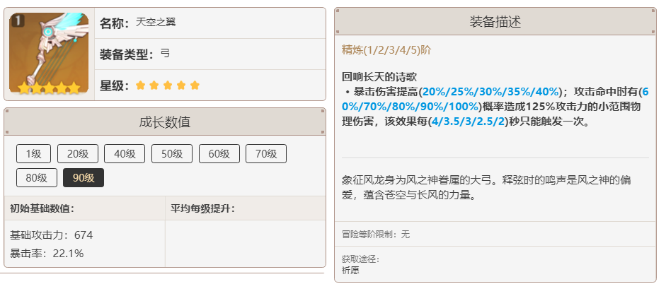 这把四星武器性价比最高的,有565基础攻击和五星的都差不了多少,最容易满精,玩的久的背包应该都有,非常不错,推荐大家带这个,四星的暗巷猎手基础攻击一样,但副词条加攻击,其次选择,如果都没有的那就锻造一把试作澹月作为前期使用,