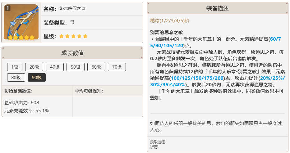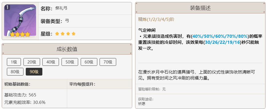 这把武器虽然基础攻击力是608,但在五星武器中和九条最契合的,副词条增加元素充能效率,不过还是很奢侈,有多余的就带它,