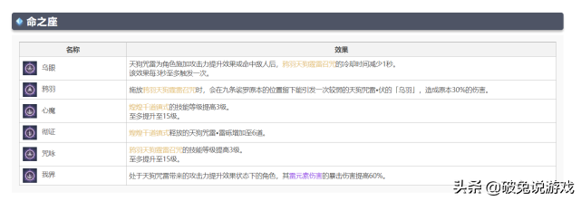 什么情况下可以培养九条裟罗?一句话:2命可以当成雷系充电宝,4命化身雷系班尼特,6命最强雷辅。九条裟罗的命座中,2,4,6都是核心命座。