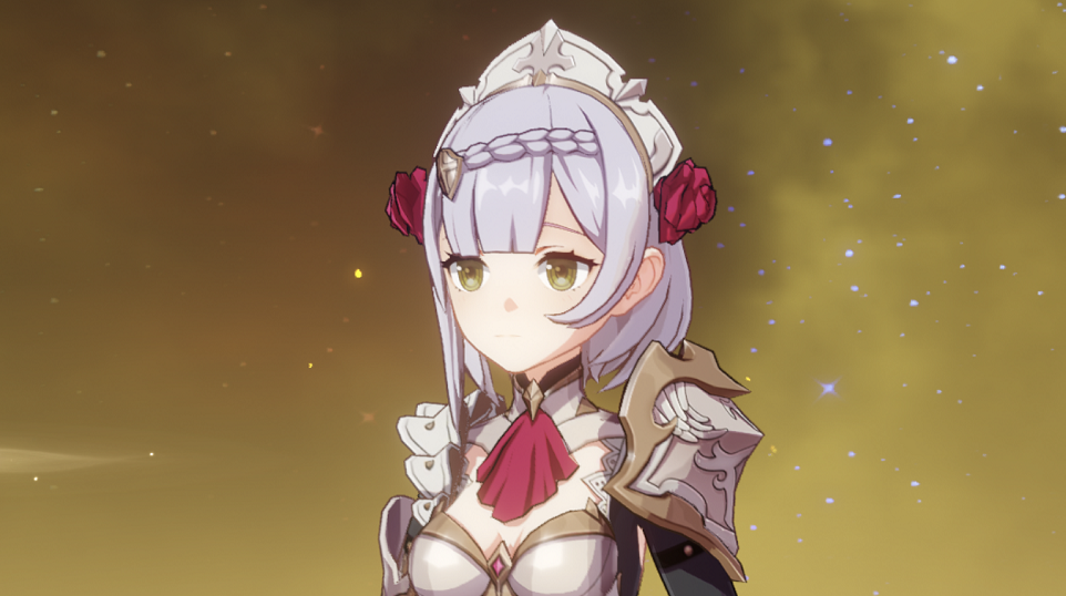 诺艾尔有盾有奶可辅可C能抗能打相当的全能,武器带一把锻造的白影剑就能大杀四方,在成型的岩系队伍中,她的生存能力与攻击范围等甚至比主C荒泷一斗还有优势,喜欢玩艾诺尔女仆这个角色的玩家一定要把她练到满命,带来的安全感那是满满的。