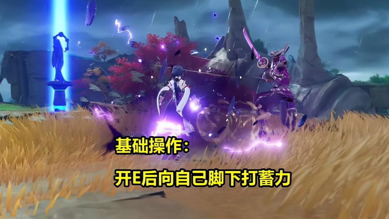 开启E技能时,九条会瞬移一个身位,并进入乌羽护持的状态,此状态下蓄力攻击命中敌人时会在敌人的位置留下一根羽毛,羽毛会造成范围伤害,并提升范围内的角色的攻击力。这个技能描述非常复杂,实战操作也非常繁琐。玩家只需要知道,在实战中开E之后朝自己脚下蓄力攻击然后切人即可。