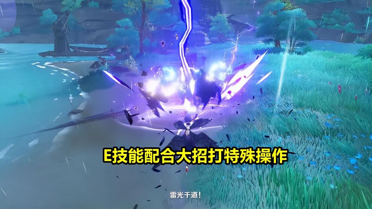 我们可以利用这个节奏打出一个特殊操作:九条先手开辅助,切角色2打EQ,再切角色3打EQ,接着再用九条开辅助,最后雷电将军打输出。