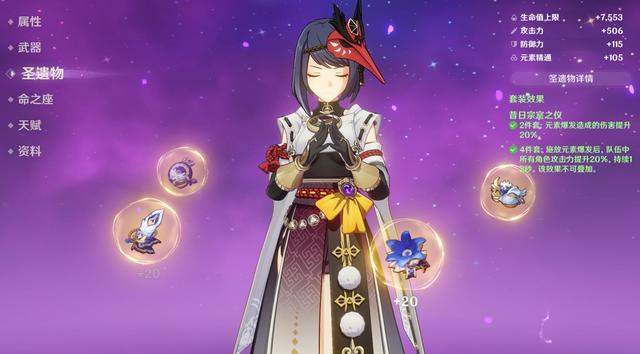 想走辅助路线就选“宗室4件套”,想走攻击路线就选“绝缘4件套”,九条的攻击力加成效果与班尼特相同,按照基础攻击力计算,所以圣遗物属性尽量偏向于输出方向,提升九条大招输出即可,不必刻意去堆攻击力。
