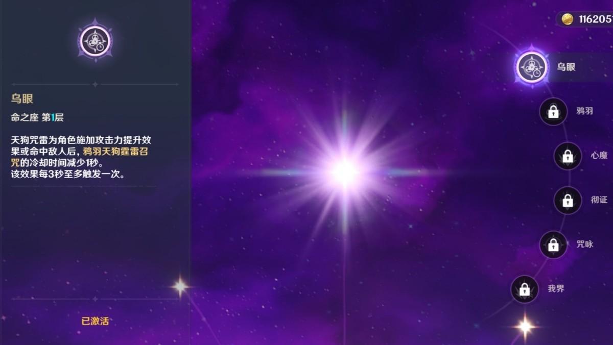 九条娑罗命座里最为核心的是2命和6命,2命可以在九条释放元素战技的位置留下乌羽,可以解决蓄力问题,虽然乌羽产生的落雷伤害会变低,不过核心的副c加攻依旧达成。6命的话攻击力加成中其他角色的雷元素伤害照成暴击伤害提高60%,这时刻晴党肯定兴奋了,当然除了刻晴,还有北斗和雷电将军。