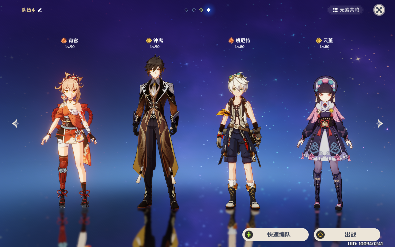 推荐组合1:宵宫+钟离+班尼特+行秋