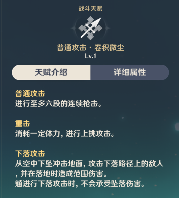 ·有额外普攻/下落攻击伤害加成(随天赋等级提升)