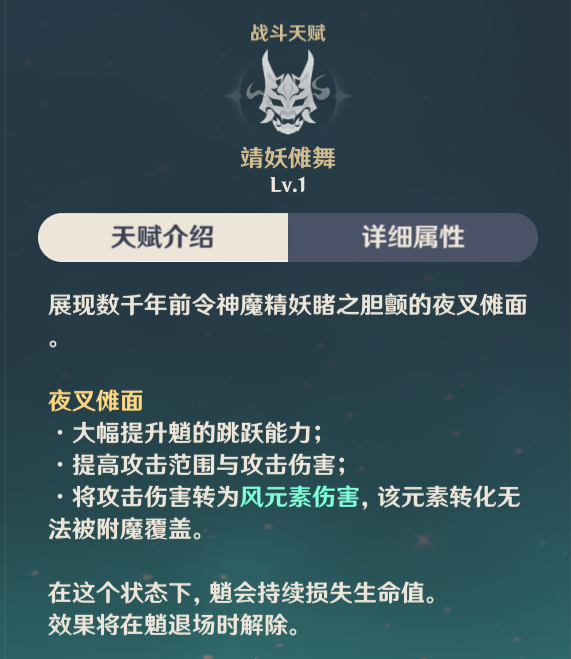 ·开启该技能后,将魈的攻击伤害转为风元素伤害,该元素转化无法被附魔覆盖