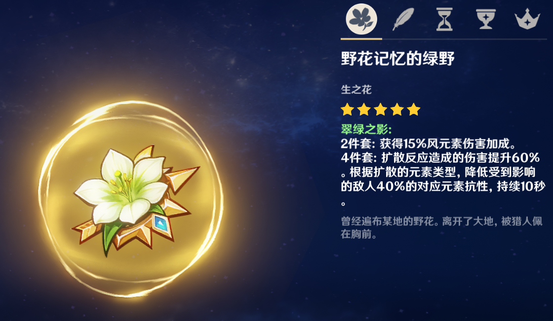 ※五星圣遗物 套装 举例: