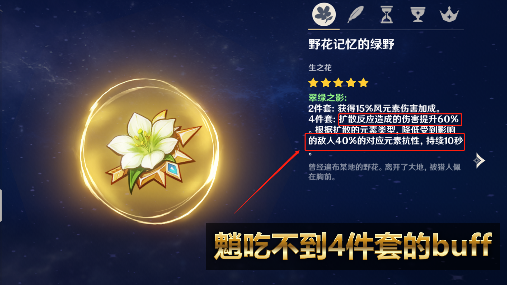 当然,一般来说,大部分玩家如果不看攻略的话,就喜欢凑4件【翠绿之影】套装。可是,魈宝根本吃不到4件套的收益。魈是打的风元素伤害,而4件套是降低扩散反应时,所对应元素抗性,对于魈这样的风元素主C来说,一点用也没有,4件套适合风元素辅助,不适合主C。