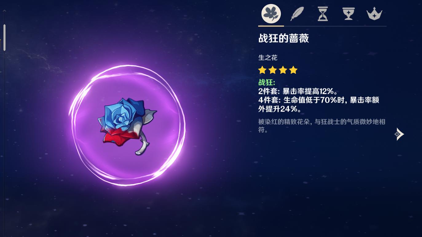 无论是对于武器,还是圣遗物词条选择,都能够大幅度的降低刷取难度。要说这件圣遗物最大的缺点的话,就是没有5星。所以,即便是再强,玩家也早晚会把战狂套给替换掉!