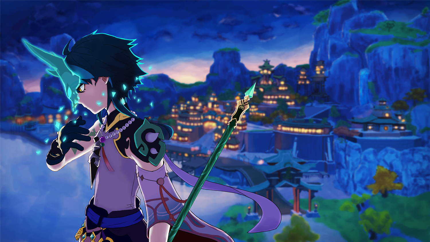 最后的结局大家伙都知道了,夜叉族深受业障困扰,最强大的五大夜叉死了四个,只留下一个魈孤独与人世间。为了避免业障影响到其他人,魈只能独来独往。我记得在海灯节的时候有位画师画了一幅图片,远处的璃月在节日气氛下张灯结彩,而魈只能站在远处的深山上眺望着这一切,背影孤独凄凉,让人就就难以忘怀。