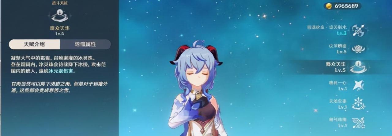元素爆发·降众天华:召唤退魔的冰灵珠,持续降下冰棱,对范围内的敌人造成冰元素伤害,该技能持续时间有15秒,但是冰棱是持续下降,理论上较难全部命中目标,该技能可配合其他元素,打元素反应;