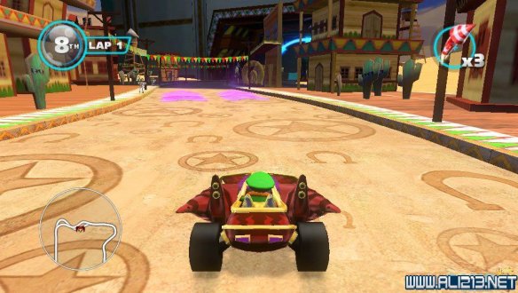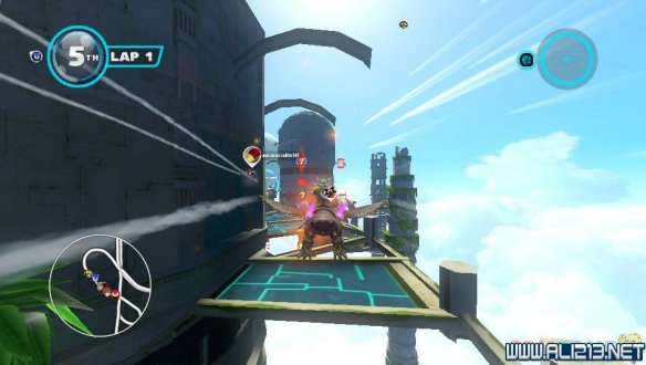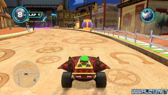 6.这点不属于道具范畴,但也是一种攻击手段:以一定的高速去撞击对手的后轮或车身中部,有可能使其驾驶严重不稳定,或者使其冲出跑道